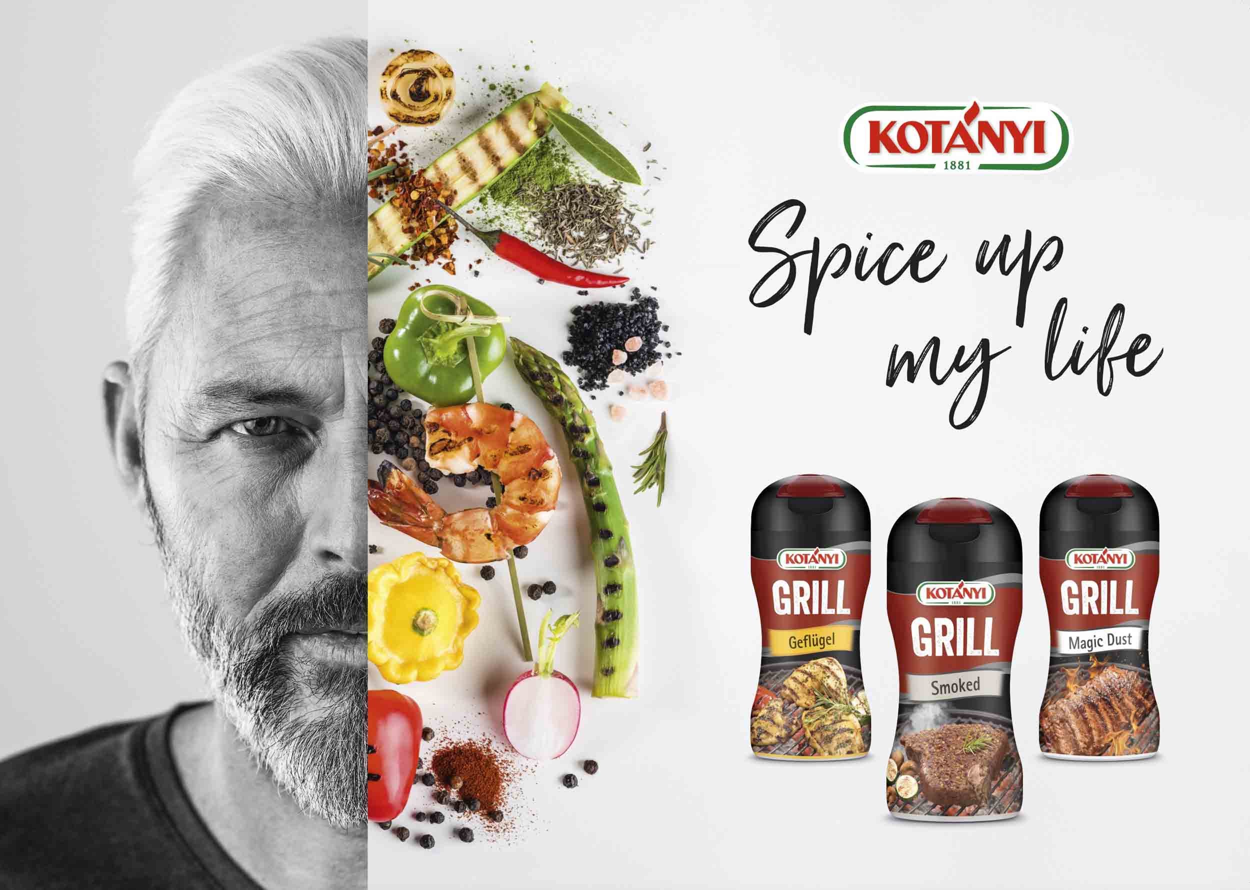 Eine bildstarke Komposition: Im Fokus steht der Mensch, der seine kreative Kochleidenschaft mit den Gewürzen von Kotányi zum Leben erweckt. Mit Kampagnenstart wurde auch der neu kreierte Claim „Spice Up My Life“ ins Rampenlicht gerückt.