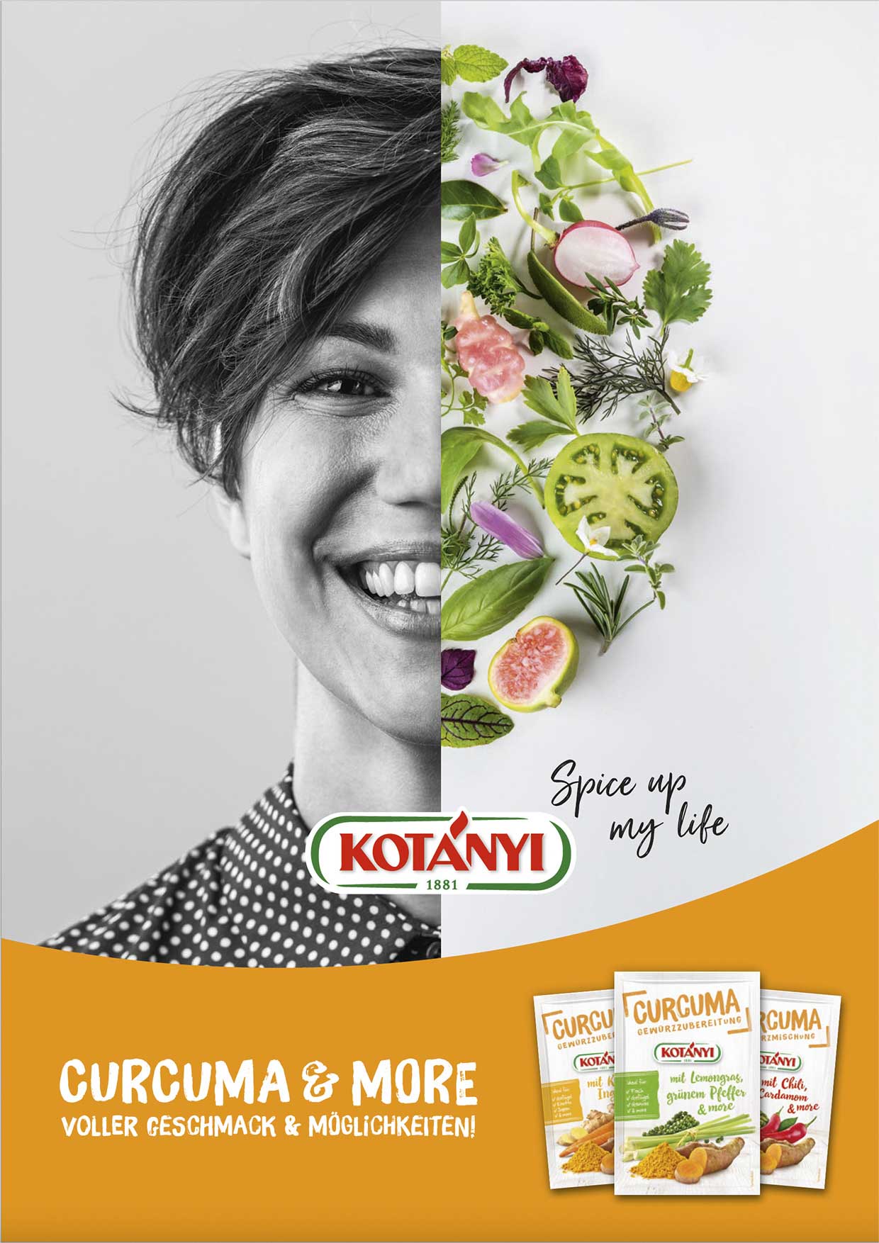 Eine bildstarke Komposition: Im Fokus steht der Mensch, der seine kreative Kochleidenschaft mit den Gewürzen von Kotányi zum Leben erweckt. Mit Kampagnenstart wurde auch der neu kreierte Claim „Spice Up My Life“ ins Rampenlicht gerückt.