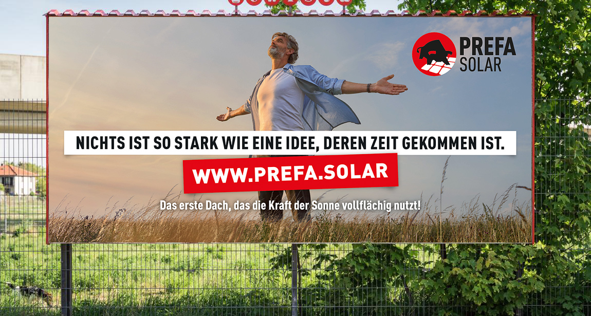 Basierend auf der von uns entwickelten Kernbotschaft „PREFA ist der starke Begleiter“ zeigt die Kampagne, dass mit PREFA Solar eine Erfindung an den Start geht, auf die sich das Warten gelohnt hat.