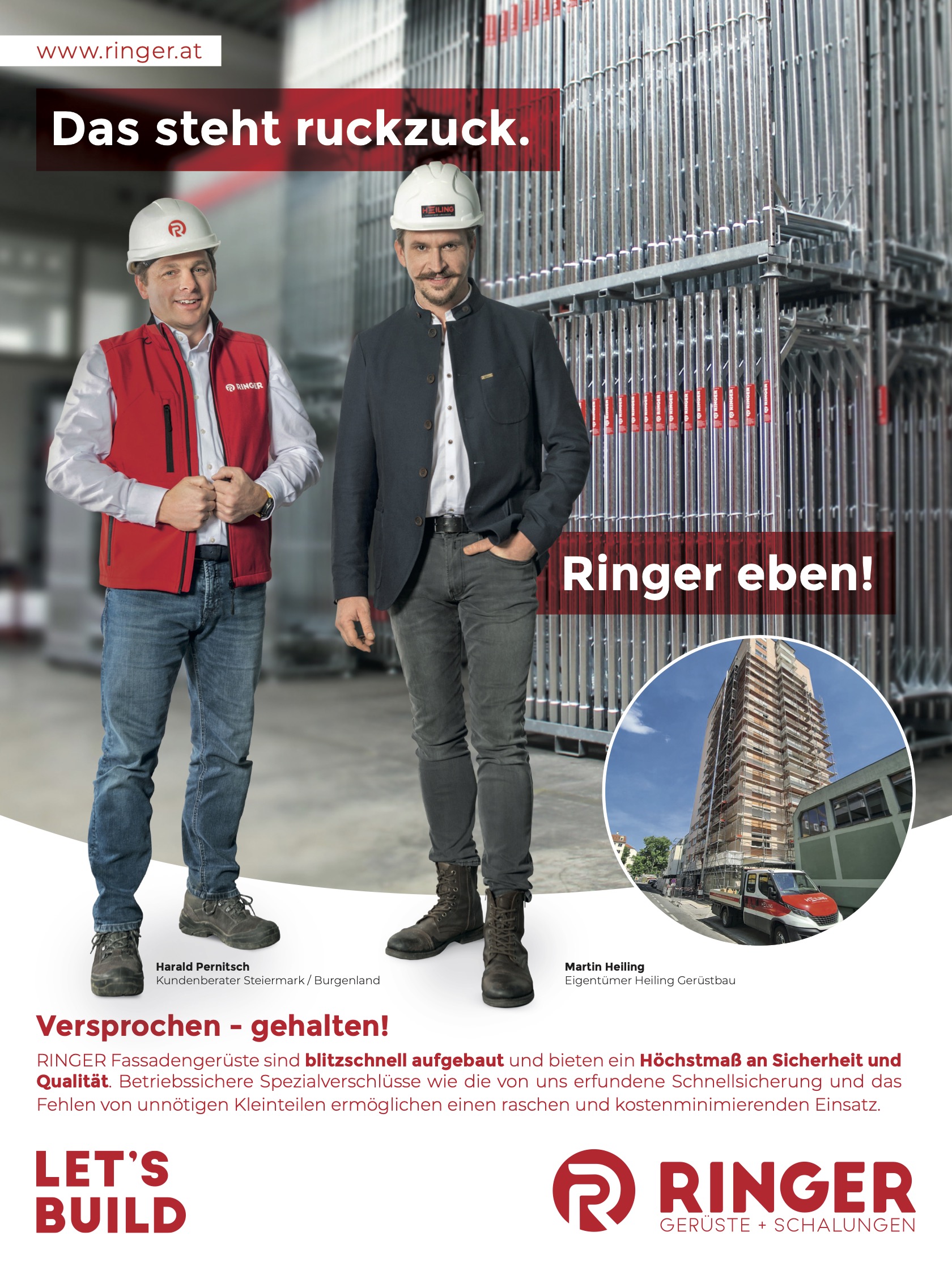 Die Firma RINGER ist eine der österreichischen Branchengrößen im Schalungs- und Gerüstbau. Ein starkes Familienunternehmen, das seit über 80 Jahren erfolgreich in Österreich und international agiert. Mit anderen Worten: darauf können Kunden zählen. In einem gemeinsamen Strategieprozess wurde die Kernbotschaft „RINGER hält, was RINGER verspricht.“ definiert. Diese Botschaft galt es anschließend zu inszeniert.